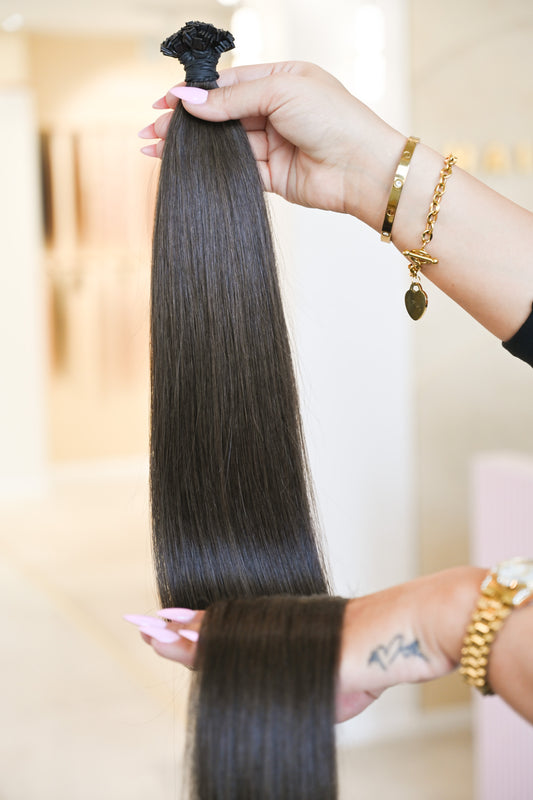 #5A MITTELASCHBRAUN US WELLIGE KERATIN BONDINGS SCHWARZE 85CM ♡