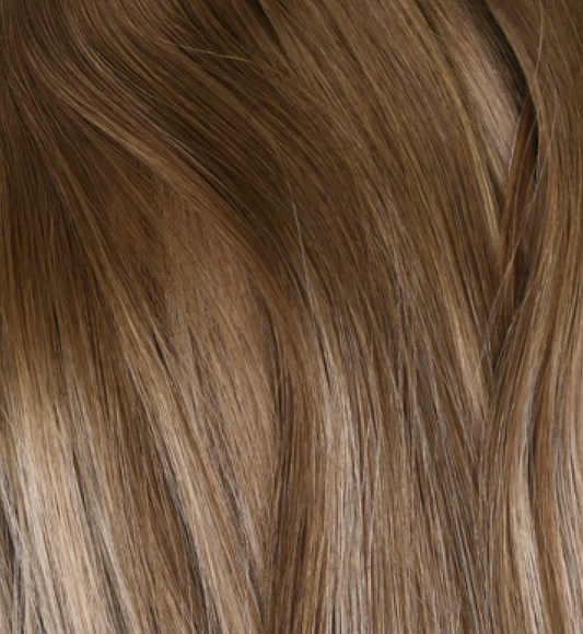 #CARAMEL FUDGE - INVISIBLE CLIP EXTENSIONS - BALAYAGE MITTELBRAUN MIT HELLBLOND ASCH ALS HIGHLIGHTS ♡