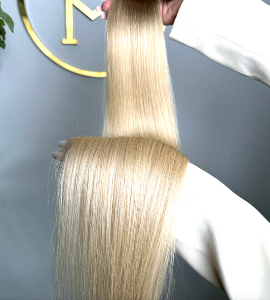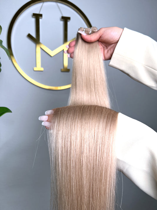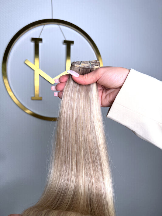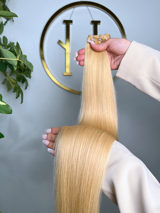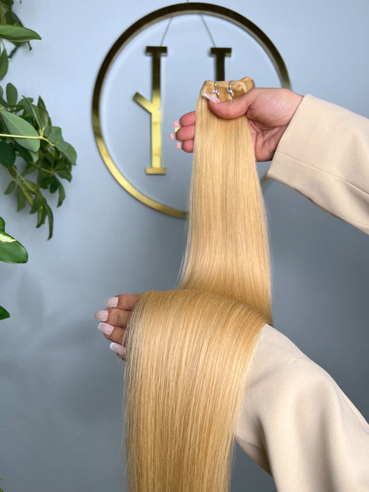 TRESSEN #CHAMPAGNE HELLBLOND GOLD RU GLATT CLASSIC WEFT ♡