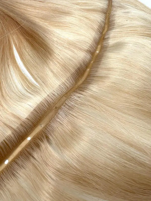 Bei dieser Methode wird dein Eigenhaar entlang der Kopfhaut, auch Cornrow genannt, geflochten. Anschließend werden die Tressen Extensions in den Lücken deiner Zöpfe genäht. Bei dieser Methode der Haaarverlängerung benötigt man weder Hitze noch Kleber. Du hast die Möglichkeit mehrere Tressenteile aufeinander zunähen und dadurch mehr Volumen zu erlangen. Diese Methode empfehlen wir dir, wenn du mittleres bis dichtes Haar hast.