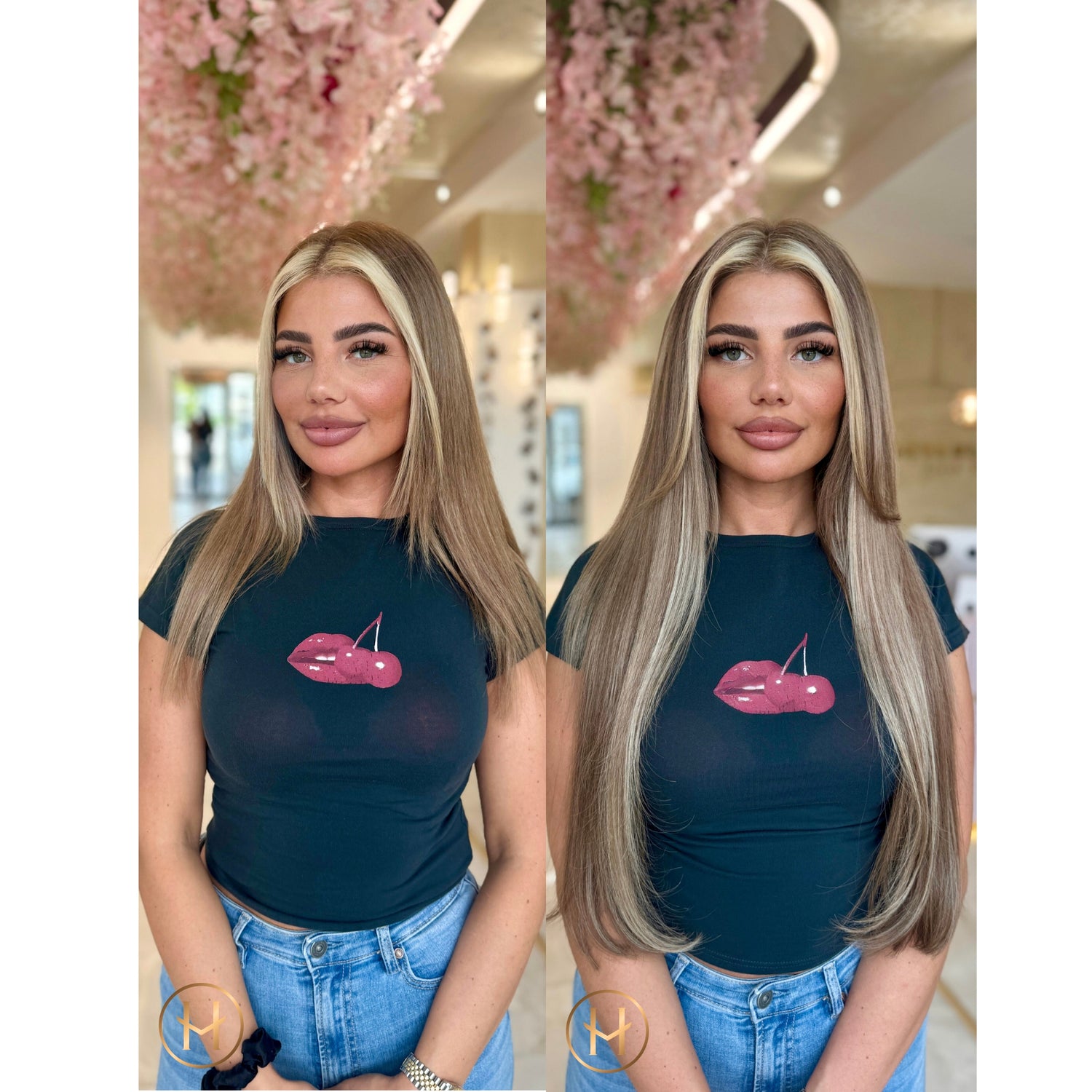 Fühle dich wie im siebten Himmel mit unseren Usbekischen Tape Extensions. Sie verändern nicht nur dein Aussehen, sondern auch dein Lebensgefühl. Denn Extensions sind weit mehr als nur Haarersatz – sie sind eine Transformation, die dir ein neues Lebensgefühl schenkt. Diese hochwertigen Extensions bringen nicht nur Volumen und Länge in dein Haar, sondern auch natürlichen Glanz und eine umwerfende Schönheit. Sie lassen dich strahlen und verleihen dir ein neues Maß an Selbstbewusstsein. Jeder Blick in den Spiegel wird zu einem Freudenmoment, wenn du sie trägst. Genieße die Veränderung und spüre, wie deine Ausstrahlung und dein Wohlbefinden durch diese luxuriösen Extensions gesteigert werden.