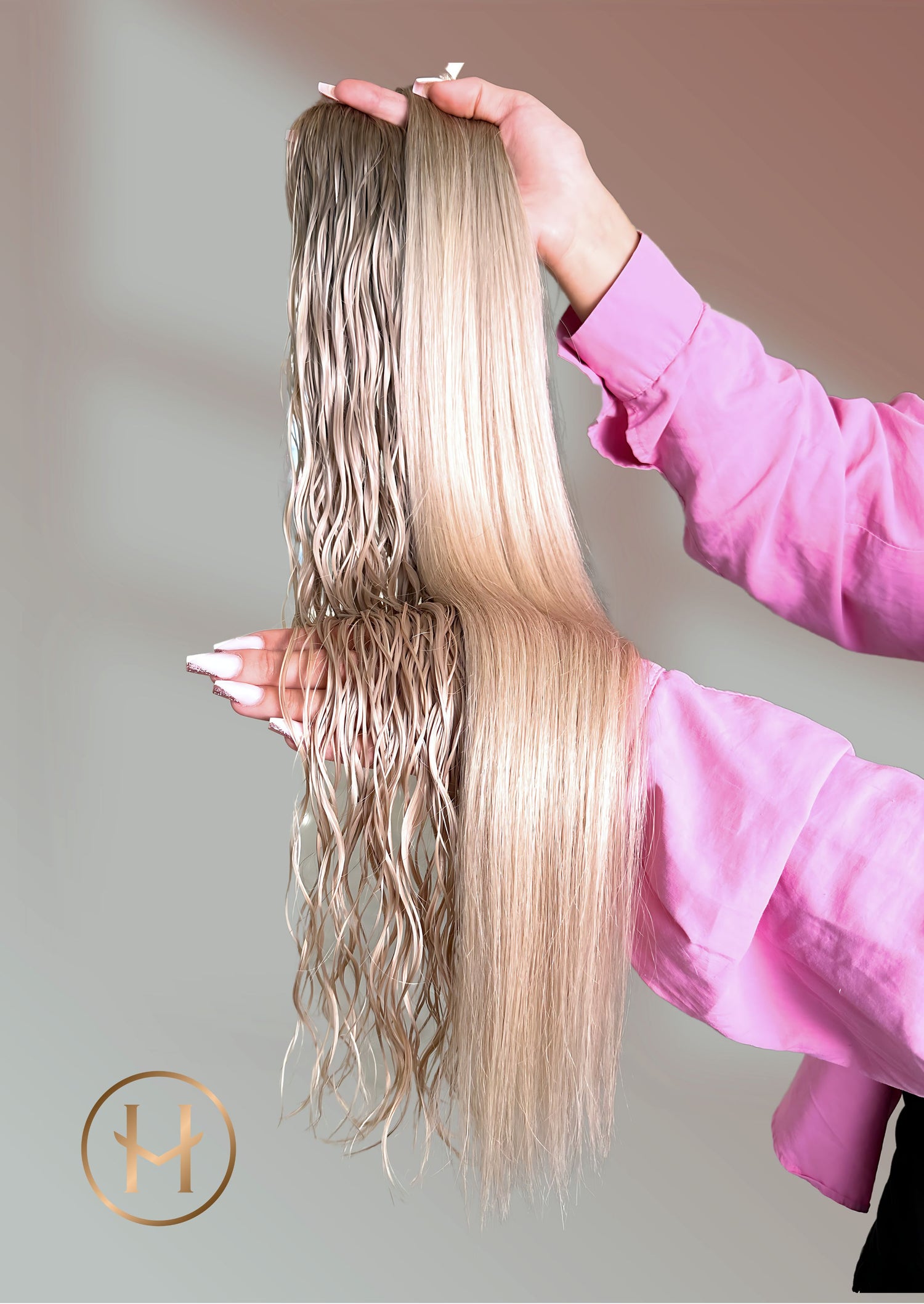 Usbekisches Haar ist von Natur aus leicht, fein und mit einer sanften Naturwelle. Dadurch wirken die Tape Extensions besonders natürlich und passen sich optimal an europäisches Haar an.
