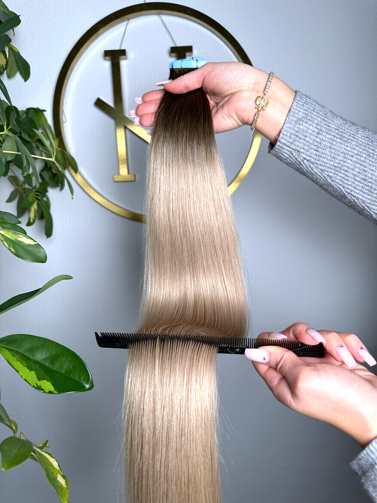 Usbekisches Haar ist von Natur aus leicht, fein und mit einer sanften Naturwelle. Dadurch wirken die Tape Extensions besonders natürlich und passen sich optimal an europäisches Haar an.
