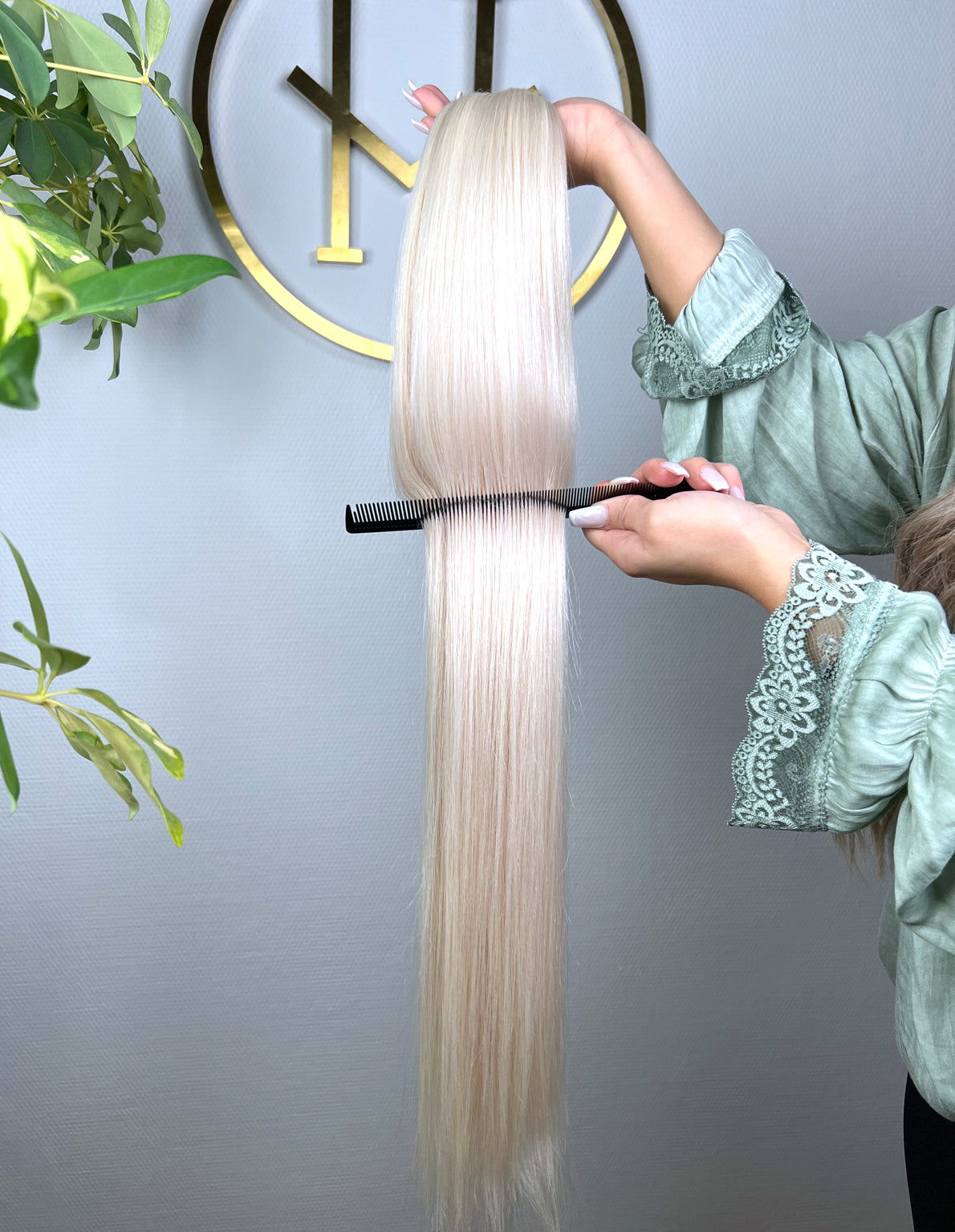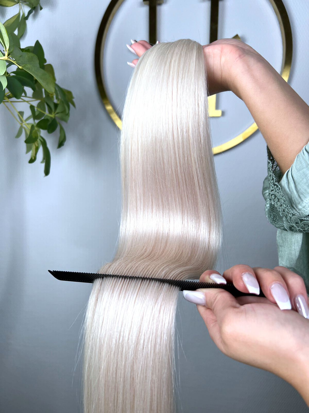 Für optimale Ergebnisse empfehlen wir unsere speziell entwickelte Pflegeserie „blessed“, die ideal auf die Bedürfnisse von Extensions abgestimmt ist.
