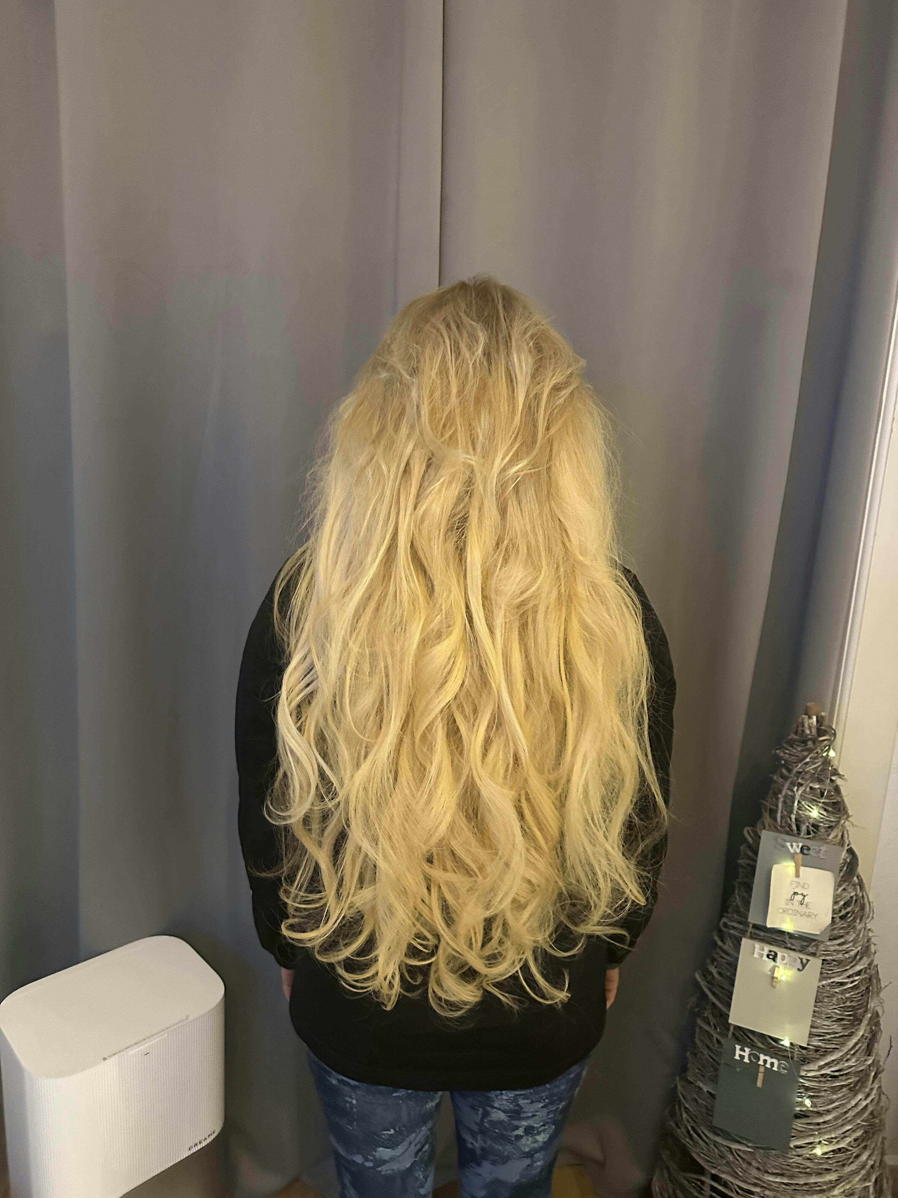Die Haare fühlen sich toll an und die bondings sind schön klein. Das einzige was mich im Vergleich mit Strähnen einer anderen firma macht, ist das jede strähne 1g wiegen soll. Im Vergleich sind diese hier aber etwas dünner. Trotzdem macht es im Gesamtbild keinen wirklichen Unterschied. Morgen kann ich die Haare das erste Mal waschen und bin gespannt ob die Naturwellen auch durch kommen. Nach meinem Standpunkt jetzt, kann ich die extensions sehr empfehlen und kaufe auch gerne wieder bei Hairvenly. Noch ein positives Feedback ist, das die Haare in einem Samtbeutel verpackt sind, in einer schönen stabilen Schatulle mit zwei kleinen extras und einer Pflege Anleitung.