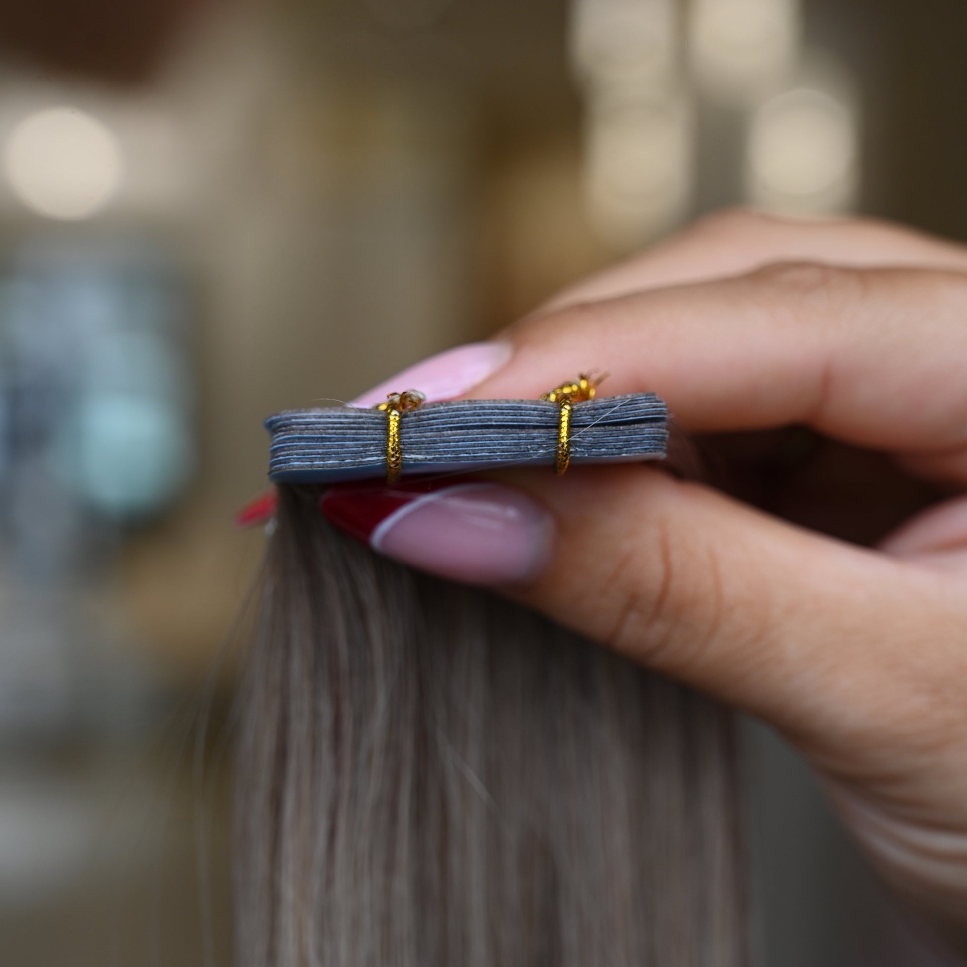 Usbekisches Haar ist von Natur aus leicht, fein und mit einer sanften Naturwelle. Dadurch wirken die Tape Extensions besonders natürlich und passen sich optimal an europäisches Haar an.