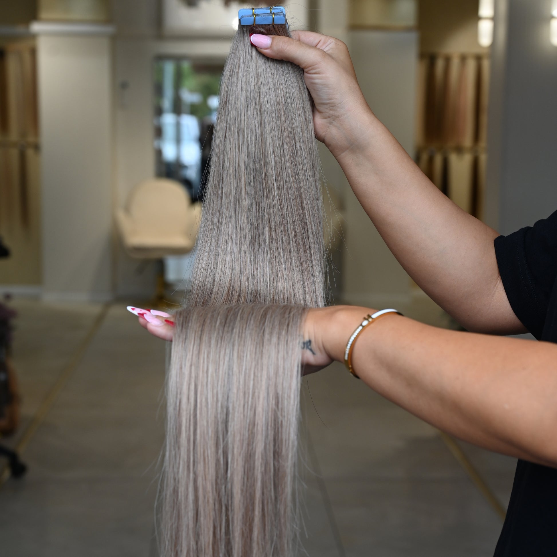 Fühle dich wie im siebten Himmel mit unseren Usbekischen Tape Extensions. Sie verändern nicht nur dein Aussehen, sondern auch dein Lebensgefühl. Denn Extensions sind weit mehr als nur Haarersatz – sie sind eine Transformation, die dir ein neues Lebensgefühl schenkt. Diese hochwertigen Extensions bringen nicht nur Volumen und Länge in dein Haar, sondern auch natürlichen Glanz und eine umwerfende Schönheit. Sie lassen dich strahlen und verleihen dir ein neues Maß an Selbstbewusstsein. Jeder Blick in den Spiegel wird zu einem Freudenmoment, wenn du sie trägst. Genieße die Veränderung und spüre, wie deine Ausstrahlung und dein Wohlbefinden durch diese luxuriösen Extensions gesteigert werden.