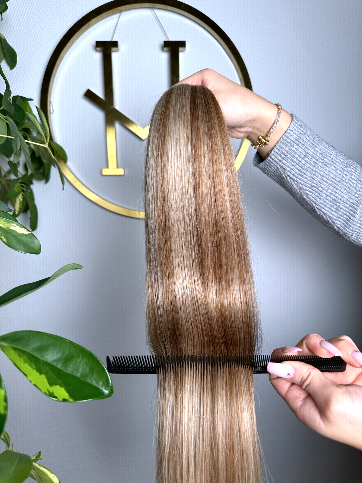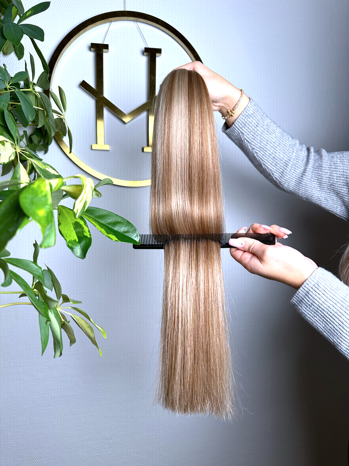 Für optimale Ergebnisse empfehlen wir unsere speziell entwickelte Pflegeserie „blessed“, die ideal auf die Bedürfnisse von Extensions abgestimmt ist.
