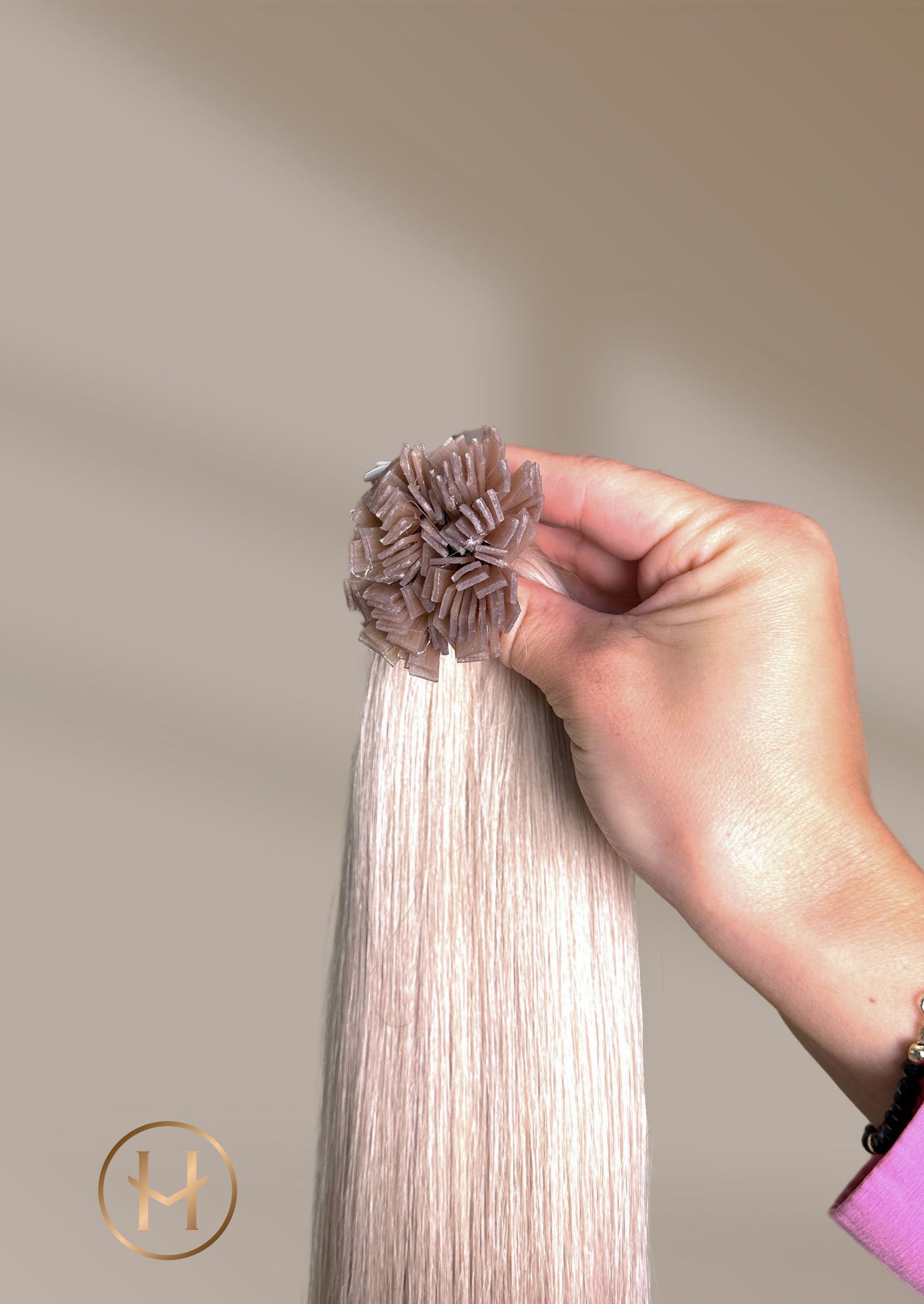 Usbekisches Haar ist leicht, fein und hat oft eine sanfte Naturwelle. Dadurch wirken die Bondings besonders natürlich und passen sich optimal an feines bis normales Eigenhaar an.