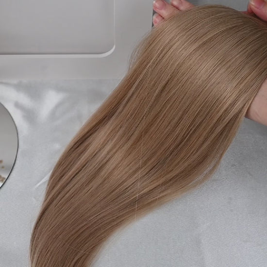 Gefertigt aus 100 % Remy-Echthaar, das wir streng selektieren. Seidig, glänzend, langlebig, Extensions, die sich anfühlen wie dein eigenes Haar.