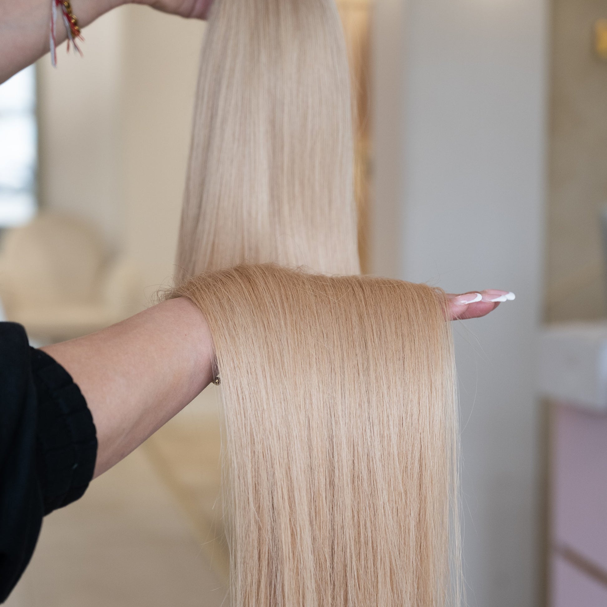 Sie sind ideal für Kundinnen mit feinem bis normalem Eigenhaar, die eine unsichtbare, leichte und dennoch vollere Haarverlängerung möchten. Auch für sehr dünnes Haar sind sie eine der besten Optionen.