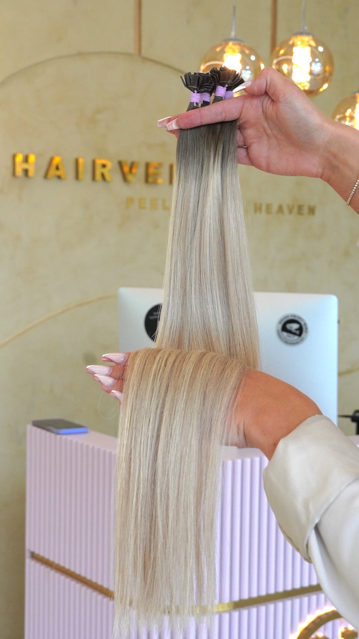 Unsere russischen Bonding-Extensions! Jede Strähne ist schmal und winzig, mit einem federleichten Gewicht von nur 1 Gramm, was sie perfekt für unauffälliges Tragen macht. Mit einer einheitlichen Länge von 63 cm bieten sie ein elegantes Erscheinungsbild. Die Strähnen sind bereits mit Keratinbondings versehen, sodass sie problemlos mit einer Wärmezange oder Ultraschall in dein Eigenhaar eingearbeitet werden können. Du hast sogar die Möglichkeit, sie problemlos wieder hochsetzen zu lassen. Bei richtiger Pflege versprechen wir dir eine langanhaltende Freude mit deinen Bonding-Extensions!