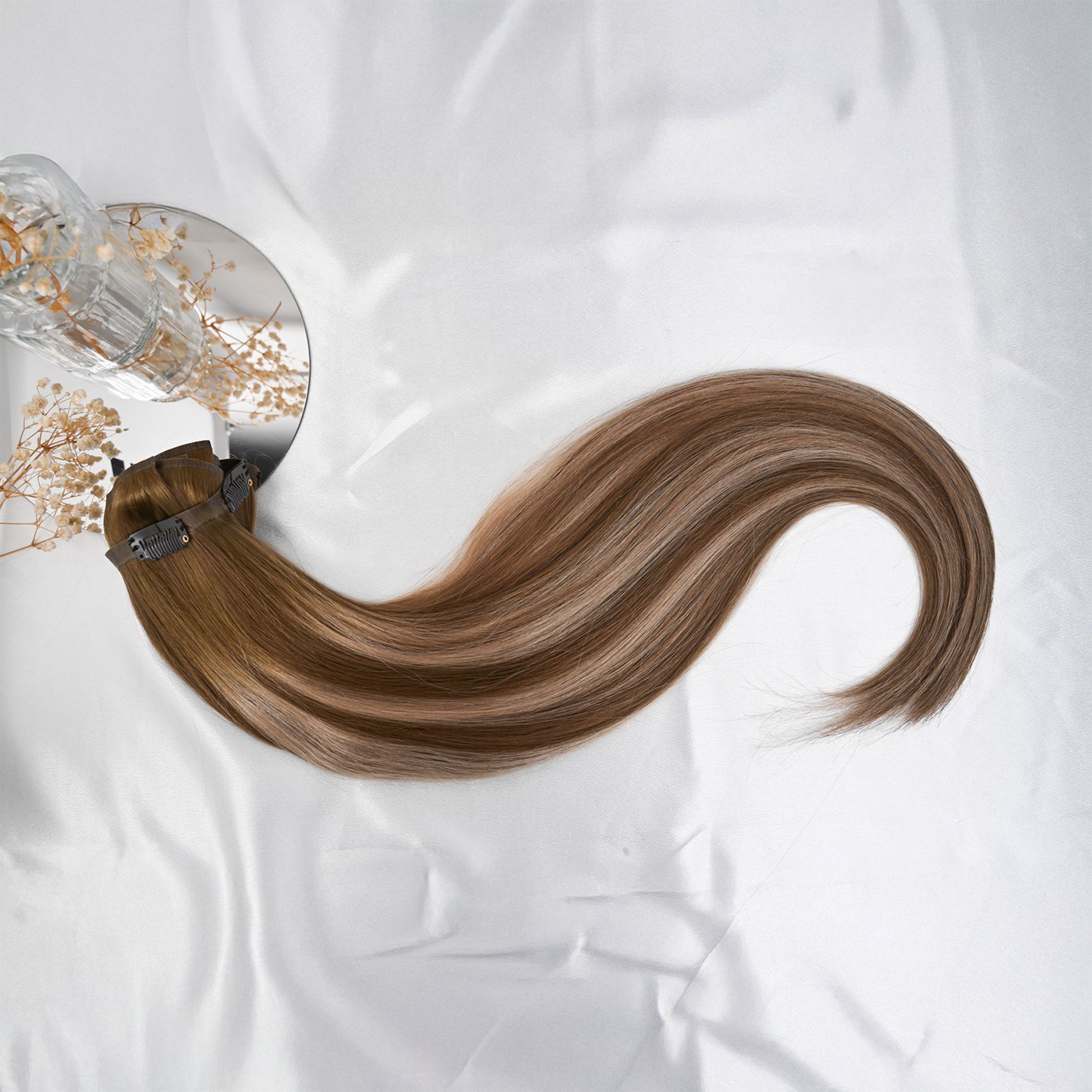 Jeder Clip ist silikonbeschichtet und sorgfältig gefertigt, um maximalen Halt zu bieten, ohne dein Eigenhaar zu belasten. Kein Ziepen, kein Haarbruch, nur sicherer, angenehmer Tragekomfort.