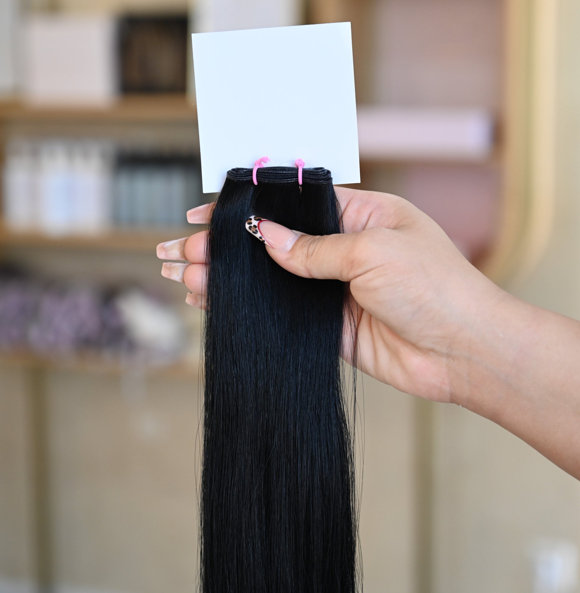 Für optimale Ergebnisse empfehlen wir unsere speziell entwickelte Pflegeserie „blessed“, die ideal auf die Bedürfnisse von Extensions abgestimmt ist.