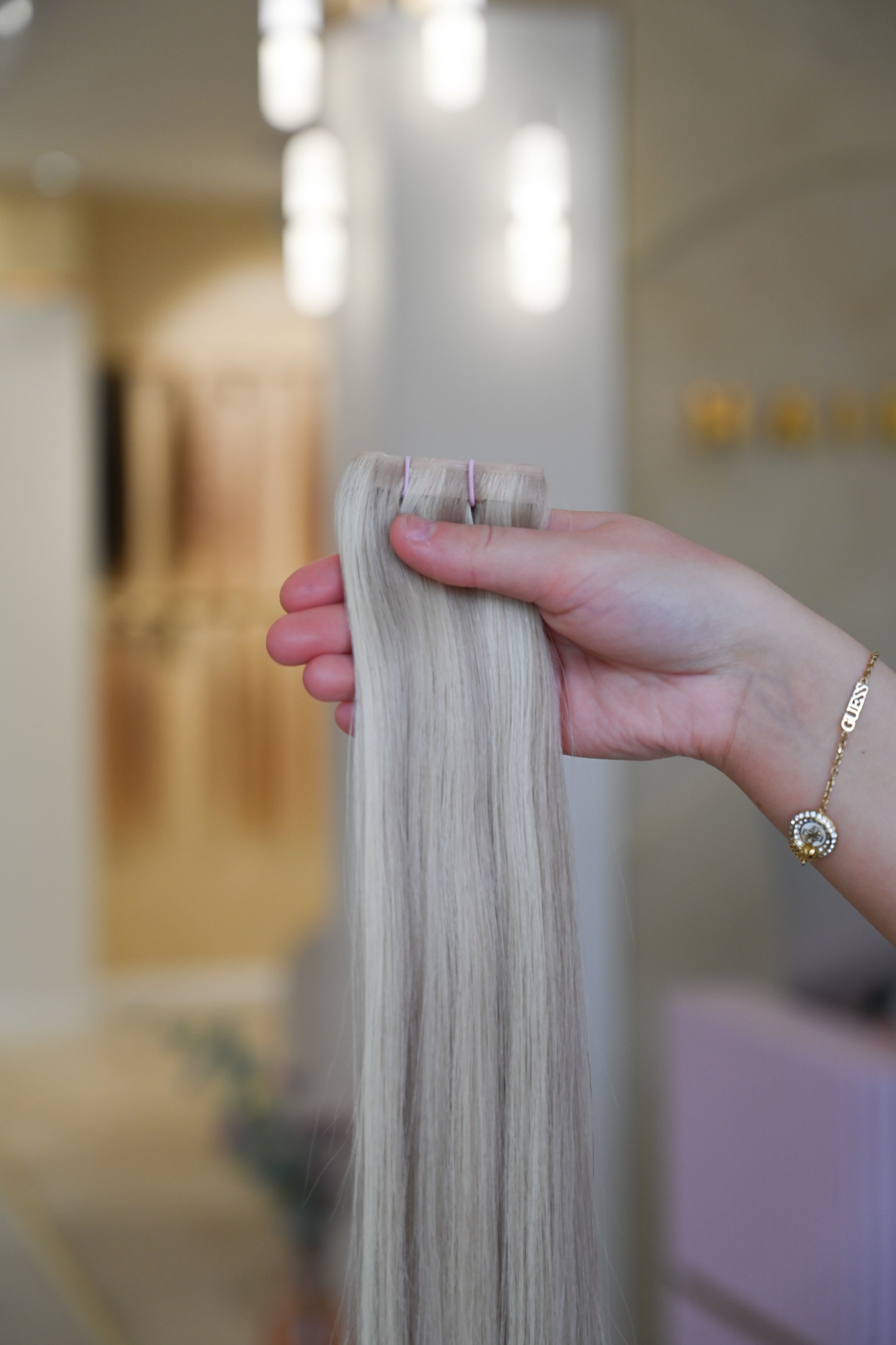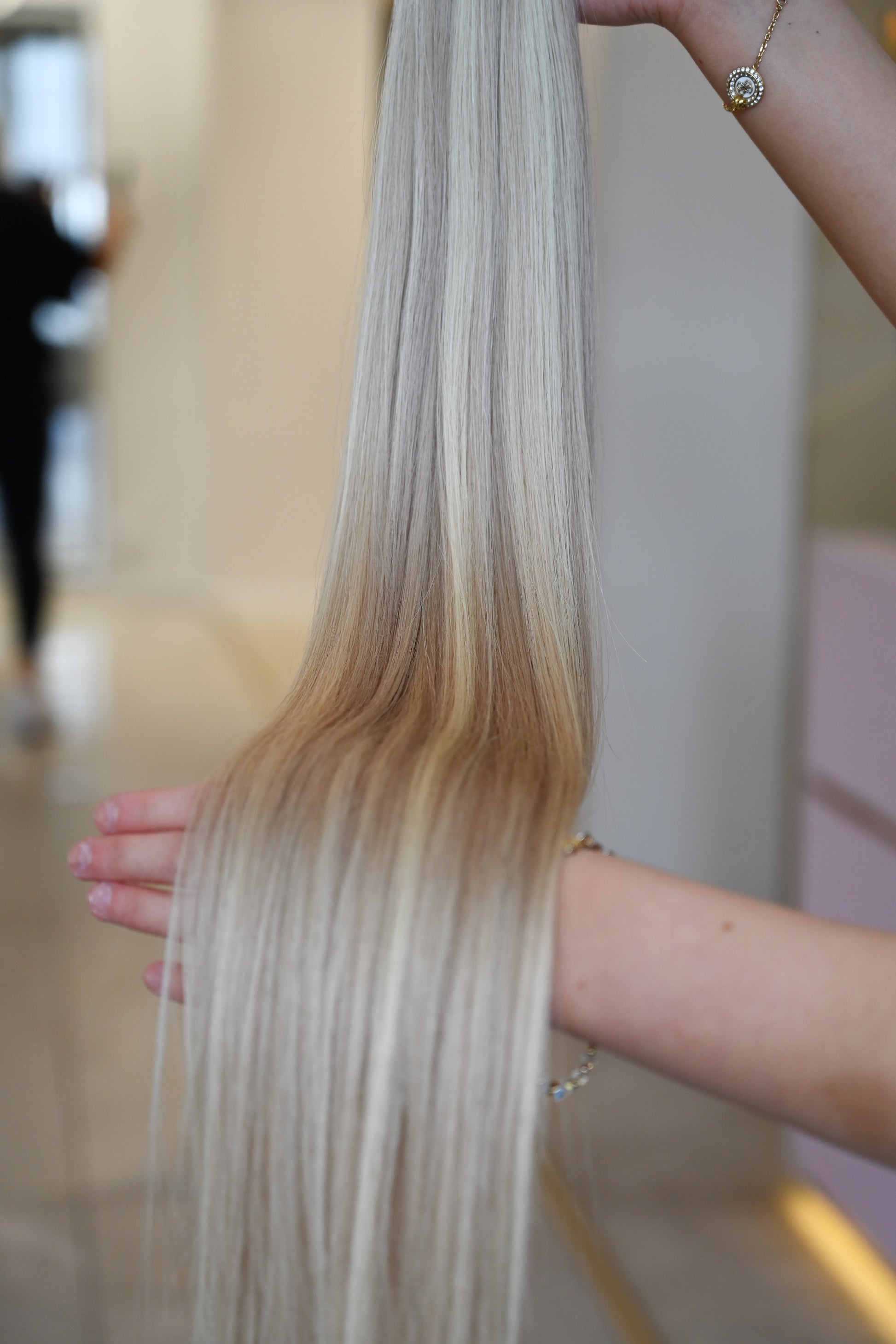 Fühle dich wie im siebten Himmel mit unseren invisiblen russischen Extensions. Sie verändern nicht nur dein Aussehen, sondern auch dein Lebensgefühl. Denn Extensions sind weit mehr als nur Haarersatz – sie sind eine Transformation, die dir ein neues Lebensgefühl schenkt. Diese hochwertigen Extensions bringen nicht nur Volumen und Länge in dein Haar, sondern auch natürlichen Glanz und eine umwerfende Schönheit. Sie lassen dich strahlen und verleihen dir ein neues Maß an Selbstbewusstsein. Jeder Blick in den Spiegel wird zu einem Freudenmoment, wenn du sie trägst. Genieße die Veränderung und spüre, wie deine Ausstrahlung und dein Wohlbefinden durch diese luxuriösen Extensions gesteigert werden.