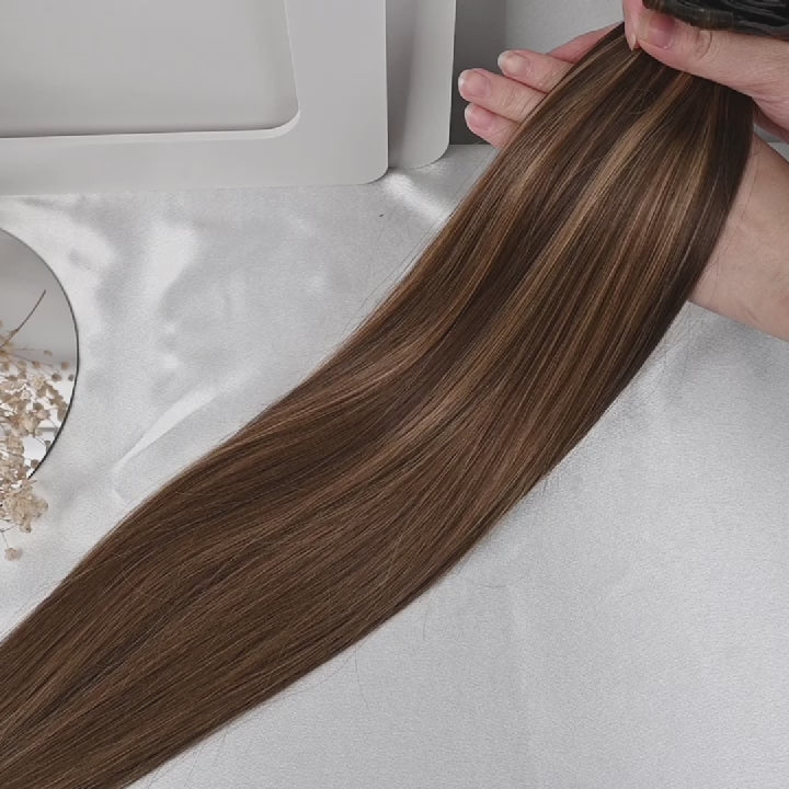#MOCHA MELT - INVISIBLE CLIP EXTENSIONS - GESTRÄHNTES DUNKELBRAUN UND SANDIGES HELLBLOND ♡