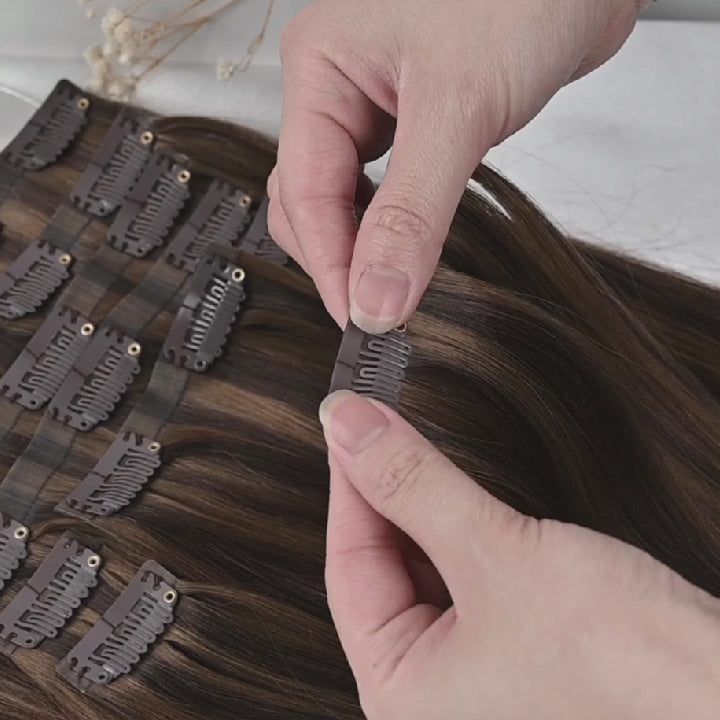 Jeder Clip ist silikonbeschichtet und sorgfältig gefertigt, um maximalen Halt zu bieten, ohne dein Eigenhaar zu belasten. Kein Ziepen, kein Haarbruch – nur sicherer, angenehmer Tragekomfort.