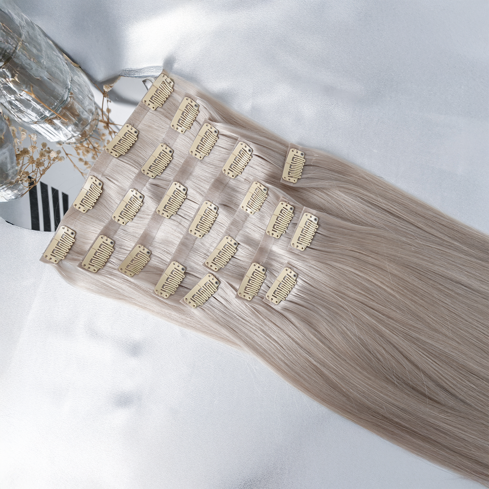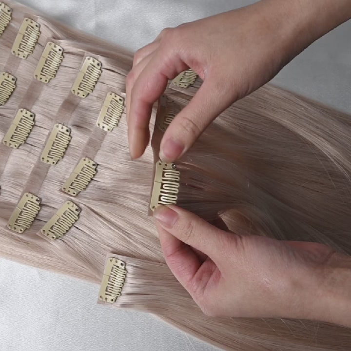 Jeder Clip ist silikonbeschichtet und sorgfältig gefertigt, um maximalen Halt zu bieten, ohne dein Eigenhaar zu belasten. Kein Ziepen, kein Haarbruch, nur sicherer, angenehmer Tragekomfort.