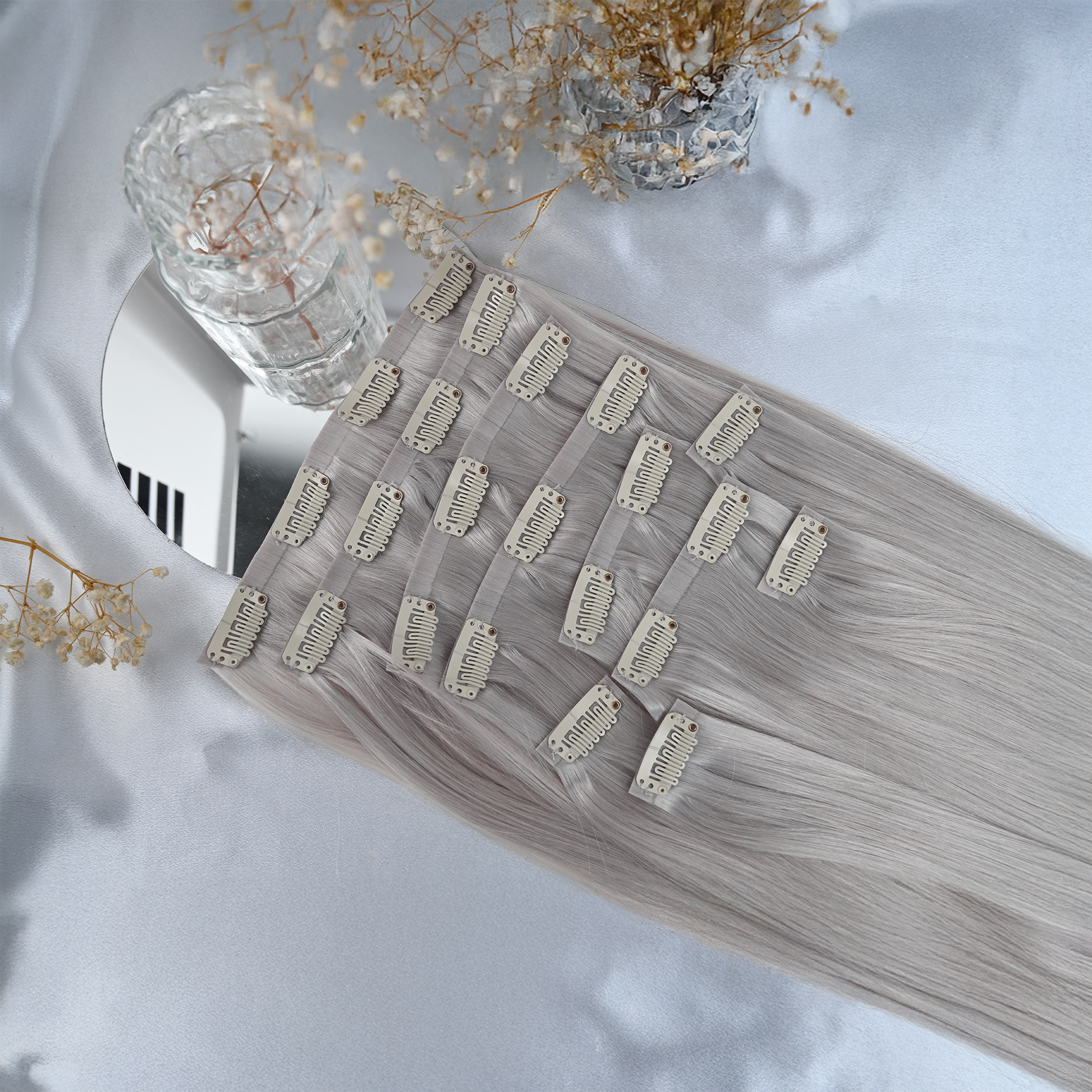 Unsere Extensions besitzen eine natürliche, auslaufende Spitze, bei der das Haar am Ansatz voller ist und zu den Spitzen hin sanft feiner wird, genau wie echtes, natürlich gewachsenes Haar. Das ist tatsächlich ein Premium-Merkmal, denn nur hochwertige Clip-In Extensions bilden diesen natürlichen Verlauf nach und sorgen so für ein besonders authentisches, fließendes Volumen mit eleganter Bewegung.
