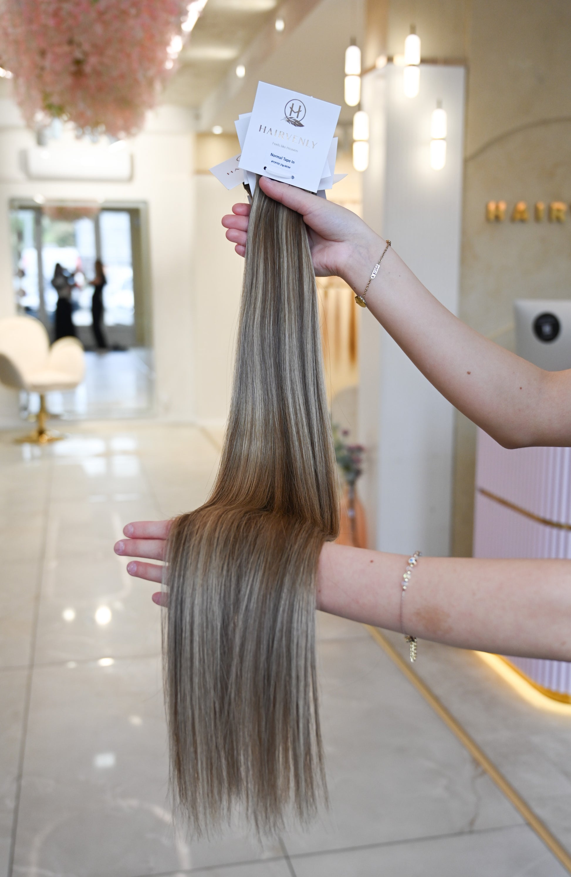 Für optimale Ergebnisse empfehlen wir unsere speziell entwickelte Pflegeserie „blessed“, die ideal auf die Bedürfnisse von Extensions abgestimmt ist.