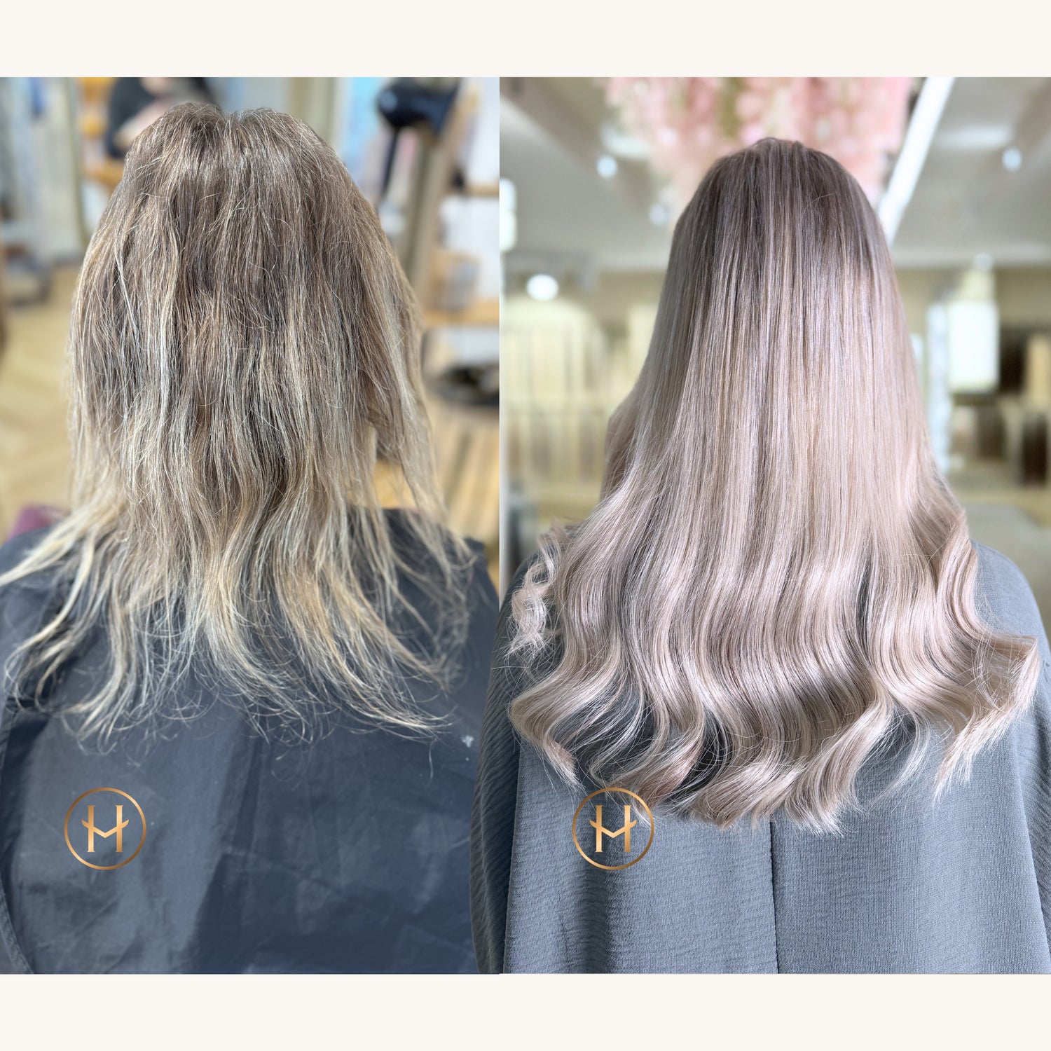 Extensions unterscheiden sich stark vom natürlichen Eigenhaar: Sie wurden chemisch behandelt und erhalten keine Pflege durch die Kopfhaut. Produkte mit hohem Anteil an Silikonen, Proteinen oder Bondingwirkstoffen – wie sie z. B. in Olaplex vorkommen – können zu Ablagerungen führen. Das Haar wirkt dadurch trocken, schwer kämmbar oder beschichtet.